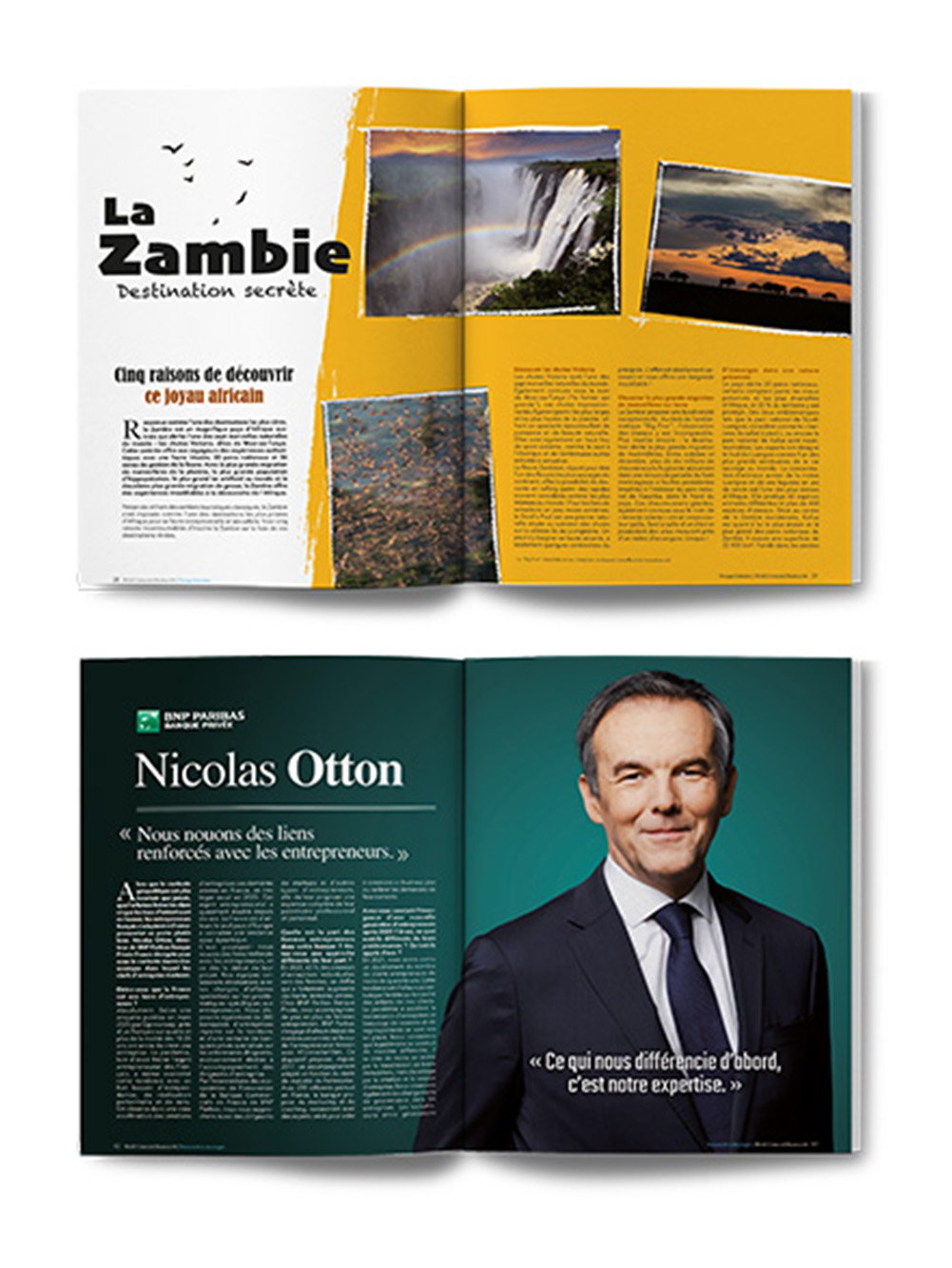 • Mise en page professionnelle de magazine papier ou numériques clairs et élégants.