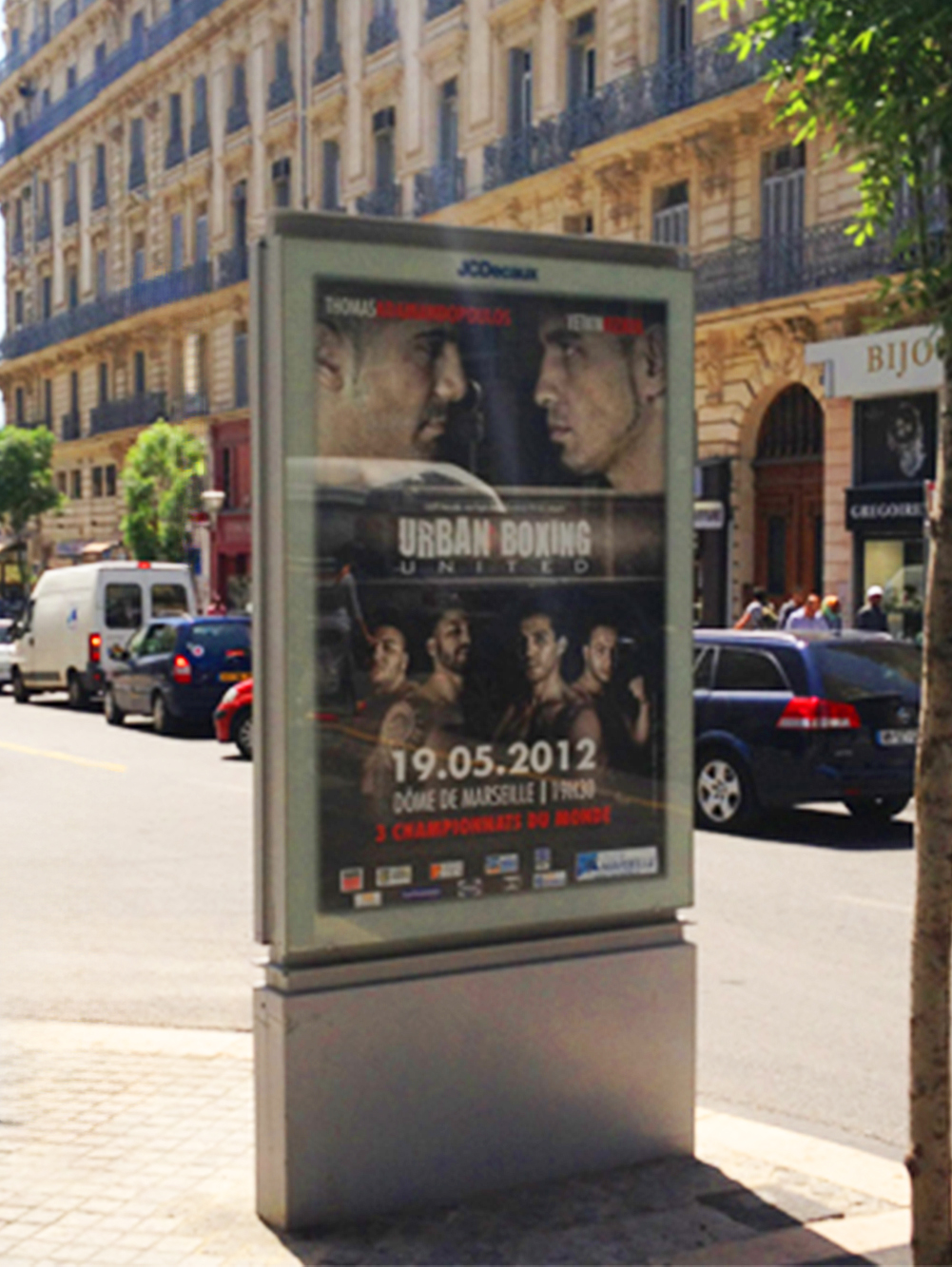 Nous avons eu la chance de faire appel à Fabien Delage pour les créations visuelles de l’Urban Boxing. Ses idées, son sens de l’image et sa rapidité d’exécution nous avaient parfaitement satisfaits. La campagne d’affichage 4x3 fut un vrai succès. Un travail efficace et des prix compétitifs. Un régal.Urban Boxing United